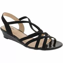 Andrew Geller Bryana Sandals – Womens. Let these fierce womens sandals take you from the office to your favorite nightspot. The synthetic uppers fasten with an adjustable ankle strap and a back zipper to keep you comfortable and confident. The memory foam footbed provides cozy softness that keeps your feet happy all day or all night. The 3-inch wedge heel looks great with many trendy ensembles, and the flexible rubber outsole gives you the support you crave.