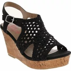 When summer fun calls for added sophistication, these womens sandals provide just what you need. Slip-on wedges with a 3 ½-inch heel, giving you a little lift. They have a faux-leather upper with wide, crisscrossed straps and a thin strap that goes around the toe. Stylish and get all-day comfort thanks to an EVA footbed and breathable lining. The cork-wrapped midsole provides extra flair while the durable rubber outsole offers optimal traction.