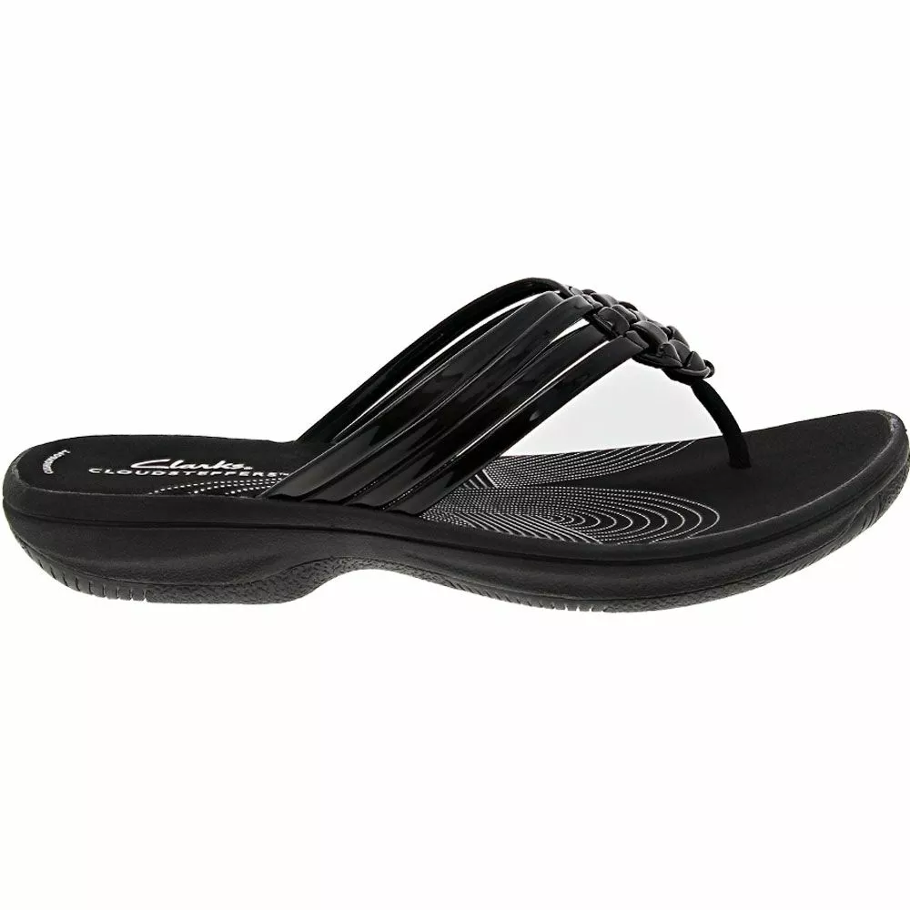 Conquer your beach days with these womens flip flop sandals. Crafted with Cloudsteppers™ technology, the Clarks Breeze Sea delivers all-day support. Its sleek silhouette exudes an effortless style that complements your entire summer wardrobe. Pair these breezy sandals easily with your favorite maxi dress, linen shorts, or bikini. Slide into a pair today and enjoy classic design without compromising your comfort.