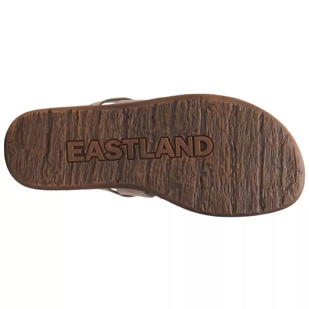 Eastland Ellie Womens Slide Sandals. Slide into comfort and style with the Ellie sandal from Eastland. Interwoven straps create a secure fit while the memory foam footbed cushions every step. The woven straps and the memory foam insole on our Ellie sandal bring style and comfort together. Available in Whole Size Only. If you are a half size, please order the next size down. For example, if you normally purchase a size 7 1/2, we recommend purchasing a size 7.