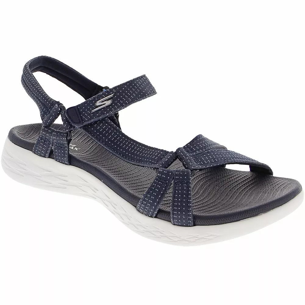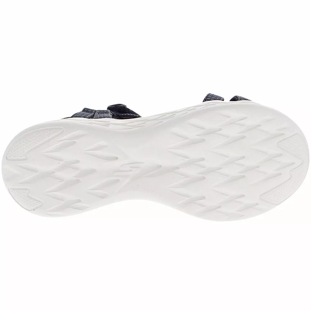 Skechers On The Go 600 Brilliancy Women’s Sport Strap Sandals. Stay on the go all day long in effortless style with these Skechers women’s sandals. The GOga Max outsole and GOga Pillars midsole create an intuitive base that adjusts to equalize the pressure of each step, offering a smoother stride and effortless walking. The sole is also lightweight and provides traction for a more secure footing. The upper is woven mesh and bears the Skechers emblem on the adjustable ankle strap. The hook-and-loop fastener and padded heel strap give a secure and comfortable fit so you can keep going without worry.
