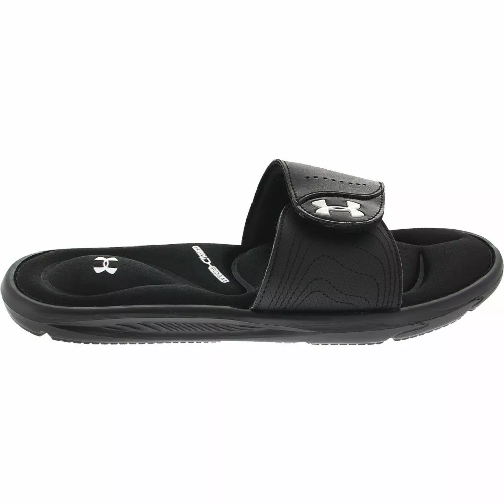 Under Armour Ignite IX Womens Slide Sandal. Keep your feet comfortable all day long with the Ignite IX from Under Armour. These womens slide sandals are designed with anatomical contours that provide cushioning and support just where you need it. The EVA outsole uses traction pods the give you added grip while increasing durability. Performance 4D Foam in the footbed conforms to your foot, making these shoes extra comfortable. They have a slip-on design for easy on and off, and the strap is adjustable to give you the perfect fit.